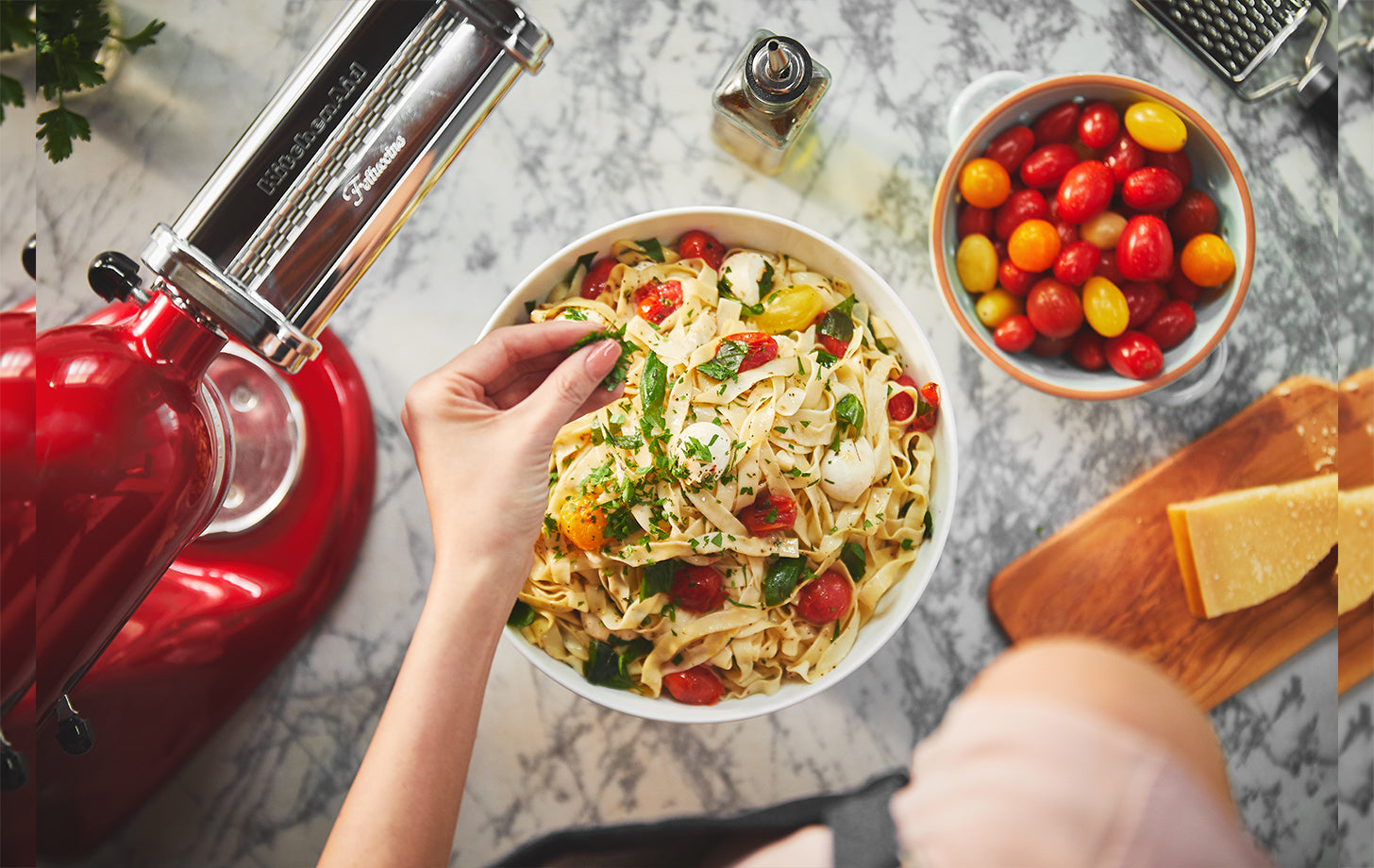 You may not think of a food mixer for making ice cream, jam, orange juice, ravioli, apple pie or veggie noodles. However, with KitchenAid stand mixer attachments, you can make your mixer a solid base for lots of handy kitchen tools. Reassuringly heavy, it's the perfect foundation for a whole collection of robust and reliable accessories. Just plug them directly into the multipurpose attachment hub and away you go.